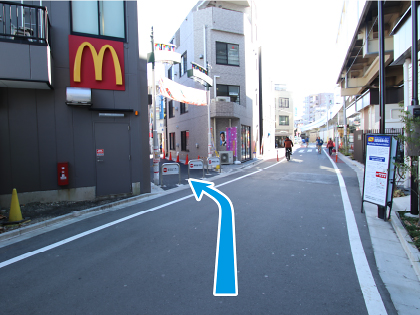 3.道路の左側にあるマクドナルドの看板脇の通路を進みます。